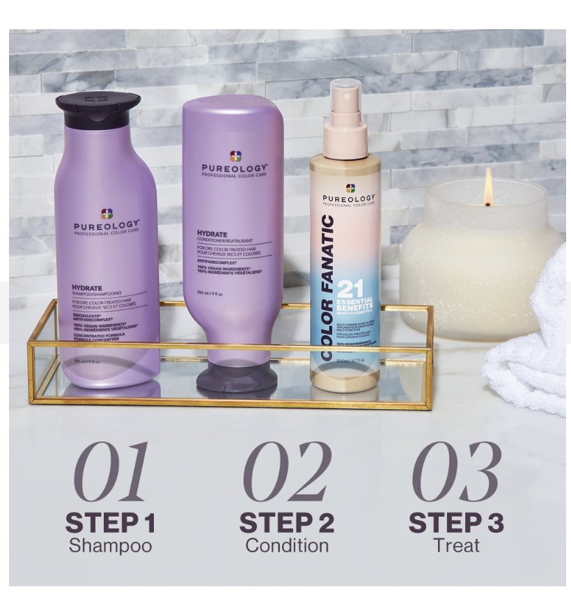 It provides 21 unique benefits to prime, protect, and perfect color treated hair. Colour Fanatic Multi-Benefit Leave-In Treatment includes Pureology's Anti-Fade Complex with Fennel Seed extract and a natural blend of Camelina, Coconut, and Olive Oil to nourish, strengthen, and offer the ultimate color protection for color treated hair. This leave-in hair treatment is the all-in-one product that protects and strengthens for longer-lasting, perfect-looking hair.