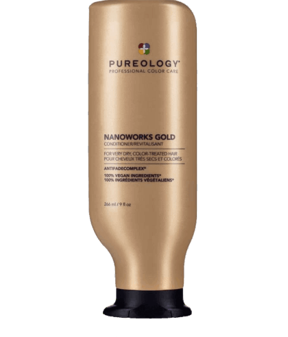 Pureology Nanoworks Gold Conditioner for advanced hair luxuriously hydrates and renews color-treated hair, leaving hair stronger and more youthful.