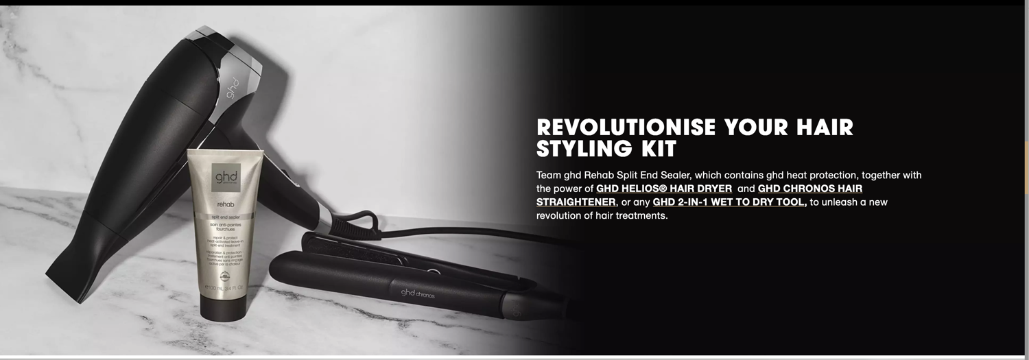 For best results, apply to washed towel dried hair, then dry with the GHD HELIOS® HAIR DRYER and heat activate using the GHD HAIR STRAIGHTENERS – combining airflow and heat to lock in long-lasting repair. Ideal for anyone wanting to preserve their ends, this nourishing formula helps deliver hair that looks noticeably smoother.