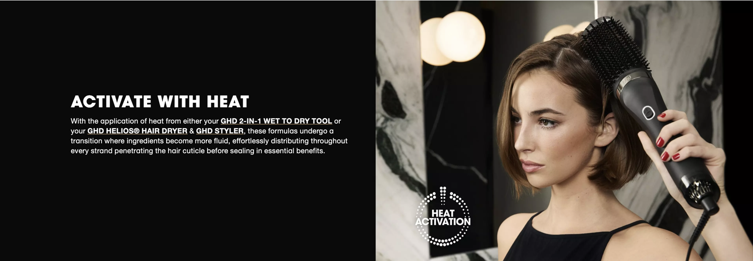 Activated by heat and designed to work best with the GHD DUET BLOWDRY, or any GHD HELIOS® PROFESSIONAL HAIR DRYER and GHD HAIR STRAIGHTENER, this treatment is perfect for fine or thin hair types. It plumps each strand while helping to maintain the hair’s natural condition, leaving it looking and healthier-feeling¹ with added body and bounce.