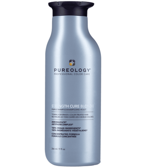 Bring out your brightest, strongest blonde with Pureology Strength Cure Best Blonde Shampoo, specially formulated for colour-treated, highlighted, or lightened hair. Infused with violet toning pigments, this luxurious sulfate-free purple shampoo neutralises unwanted brassy and yellow tones to reveal a cooler, more luminous blonde.